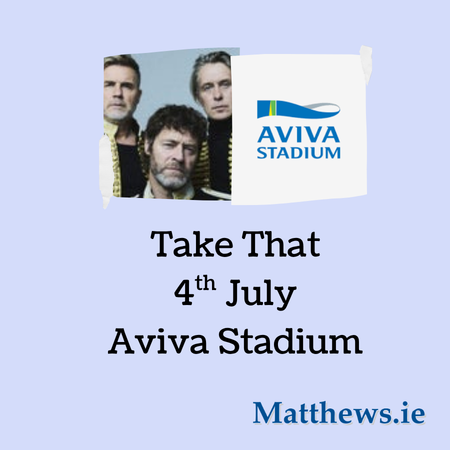 • Pick-up will be 30 minutes after the concert ends from the Coach Park at Aviva Stadium – but this is subject to change – so please monitor Facebook on the day.